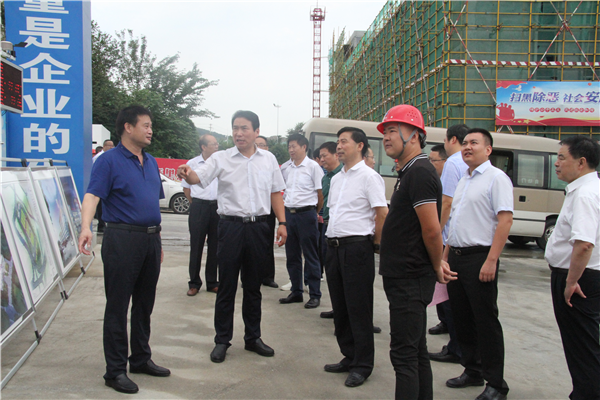 2019年8月14日上午八點半,在全國人大代表、陜西省安康市委副書記、市長趙俊民的帶領(lǐng)下,市區(qū)十多位相關(guān)部門領(lǐng)導(dǎo)來到寶業(yè)集團(tuán)公司農(nóng)貿(mào)市場和倉儲物流園在建項目進(jìn)行參觀指導(dǎo)工作,集團(tuán)公司董事長張龍寶帶領(lǐng)倉儲物流園項目負(fù)責(zé)人汪軍總經(jīng)理、農(nóng)貿(mào)市場負(fù)責(zé)人馬龍總經(jīng)理及相關(guān)工作人員熱情接待。